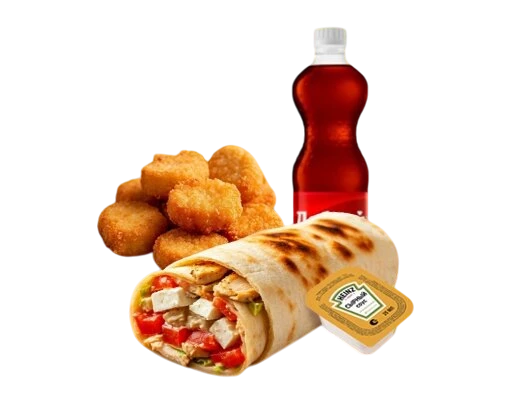Фрестер цезарь, наггетсы, кока кола, сырный соус.